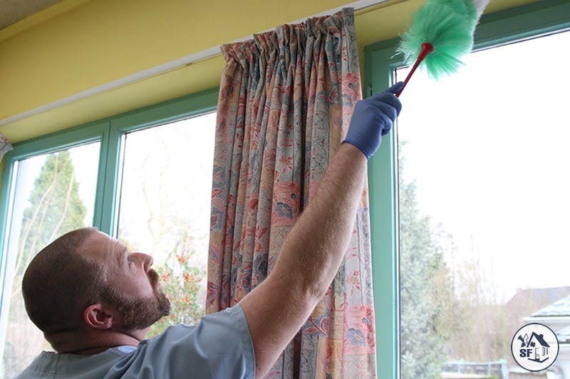 Réaliser l’entretien ménager courant des pièces d’habitation que vous occupez en tant que bénéficiaire de l’aide en utilisant le type de matériel et de produits autorisés par le Service.